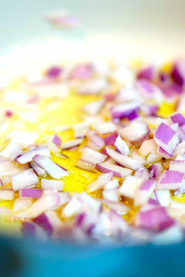 橄欖油,洋蔥和蒜爆香,與麵混合,加入海鹽和胡椒