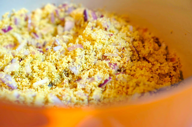 材料:北非小米庫斯庫斯 Couscous,洋蔥,Chipotle 高湯,Pinto Beans,冷凍花椰菜,蛋 (冰箱還有蛋也是個奇蹟)