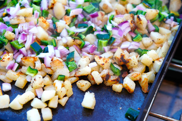 自從上星期日光節約時間啓動之後,每天腎上腺素像是突然被喚醒,大好天氣的週末下午,當然要在後院與傻妹們玩耍,順便在後院煎一盤香噴噴的香煎馬鈴薯!