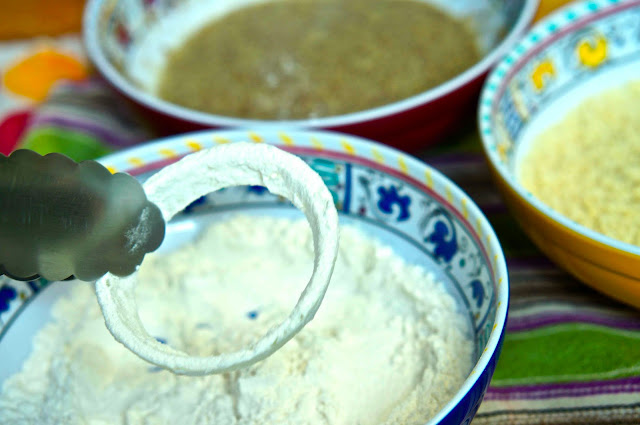 材料:洋蔥,海鹽,胡椒,橄欖油,麵粉,亞麻籽,Panko 麵包粉