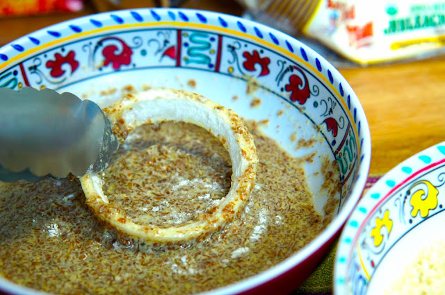 材料:洋蔥,海鹽,胡椒,橄欖油,麵粉,亞麻籽,Panko 麵包粉